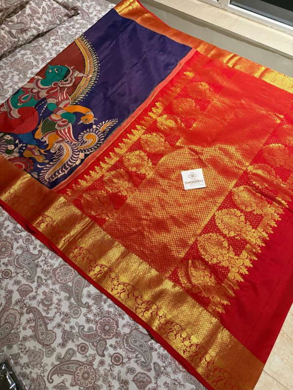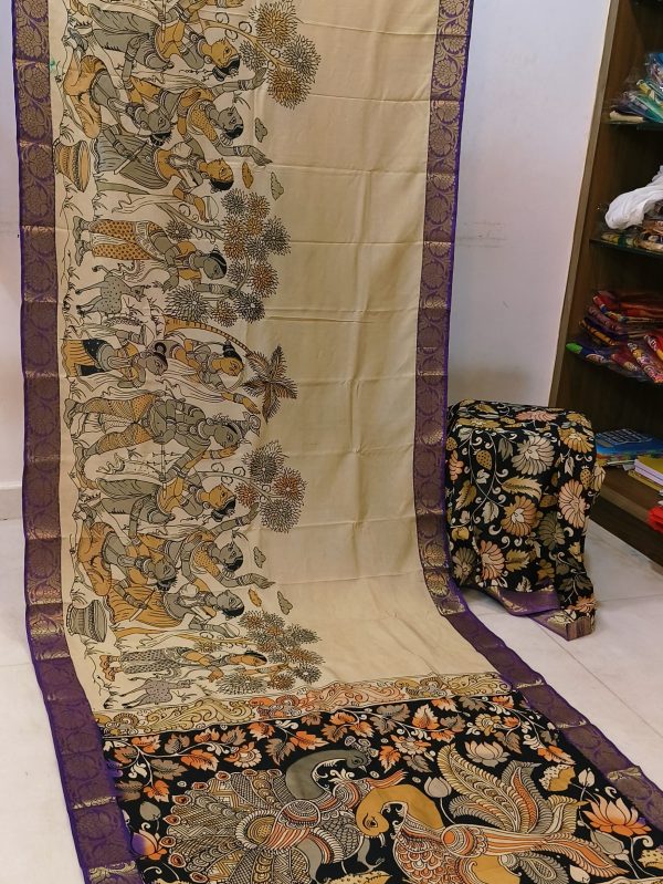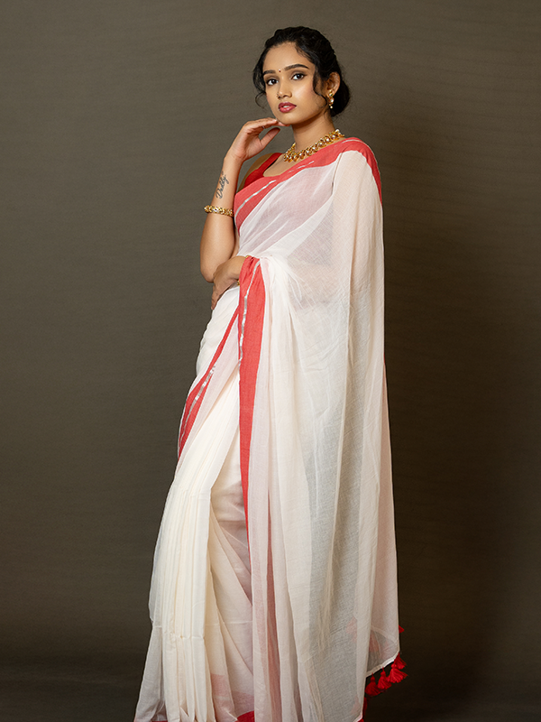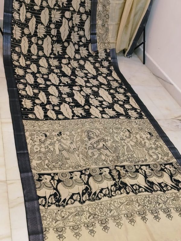 Mangalagiri Silk Black & White - Sliver Zari Saree