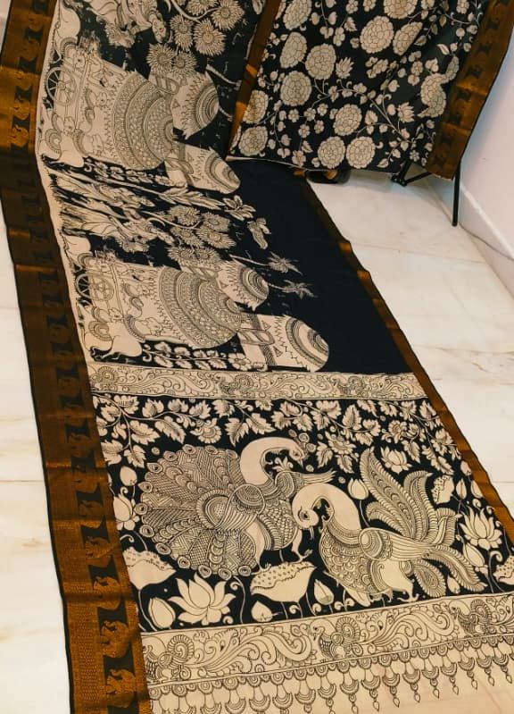 Craft: Hand-painted / hand-drawn Pen Kalamkari, showcasing intricate storytelling motifs created with meticulous detail