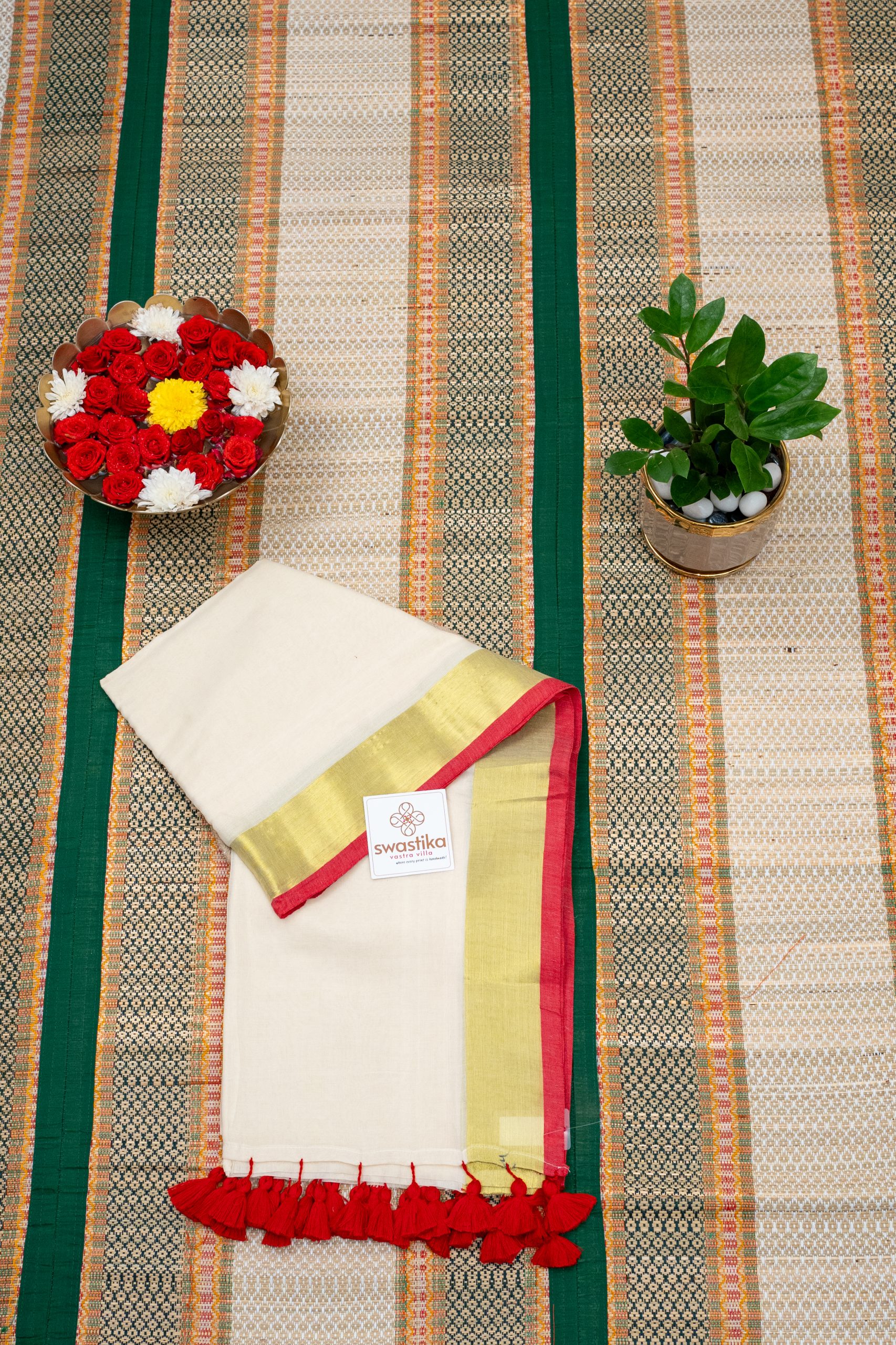 - Color: Ivory with Double Zari Border