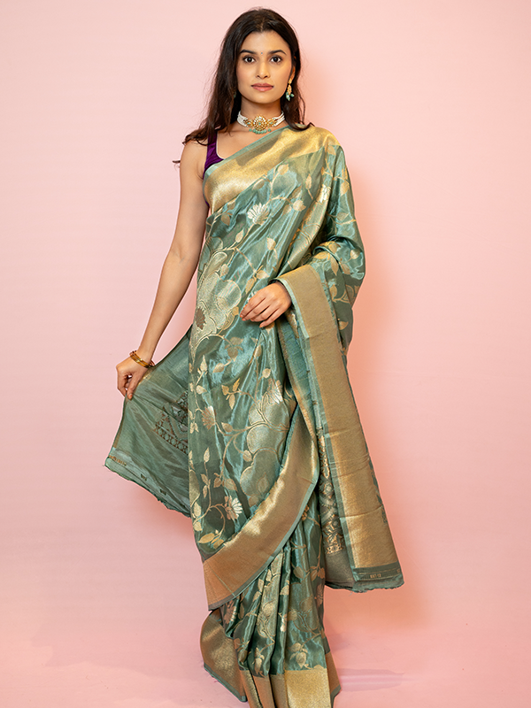 Pure Mashru Silk Saree Teal Garden Elegance