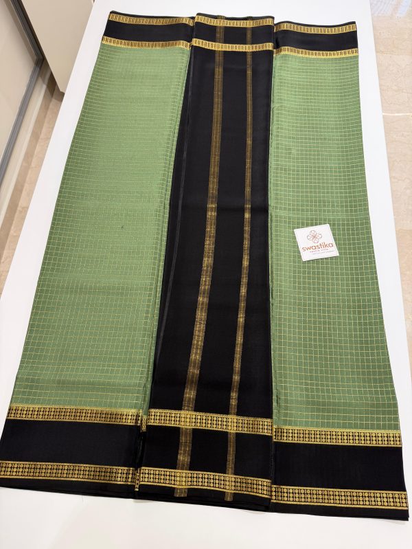 Pure Mysore Silk Saree - (An elegant silk saree with striking black pallu, and gold zari borders for a timeless traditional look..)